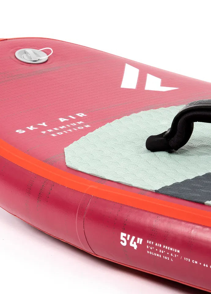 Joining the range of Sky Air models is the new entry level size of 6'10". Coming with side and rear fins it makes the perfect learner package from your first session floating along with the wing to taking off and becoming an addicted winger. The Sky Air is built in our Premium Double Layer construction is supplied with our practical wheely backpack that has room for your board, foil, wing and our Double Action pump, which you can use to inflate both your board and your wing.